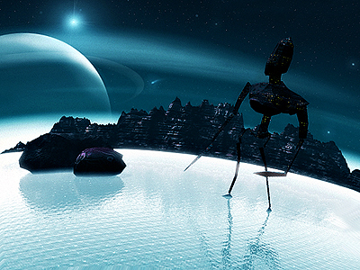 robot standing on the icy surface was created